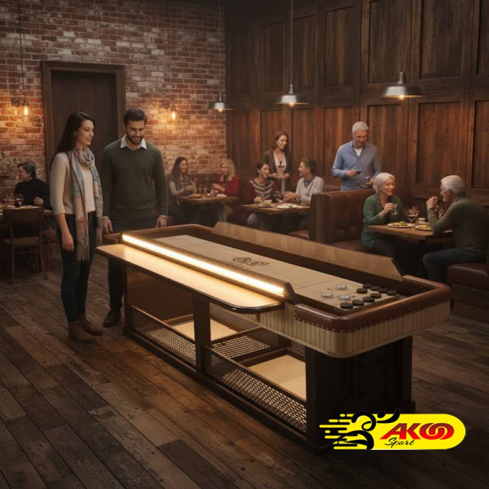میز شافل برد سری Atrium مدل Rendezvous رنگ چوب 12 فوت در آکواسپرت :مدل Rendezvous، همانطور که از نامش پیداست، قرار ملاقات ایدهآلی برای دوستان و خانواده است.