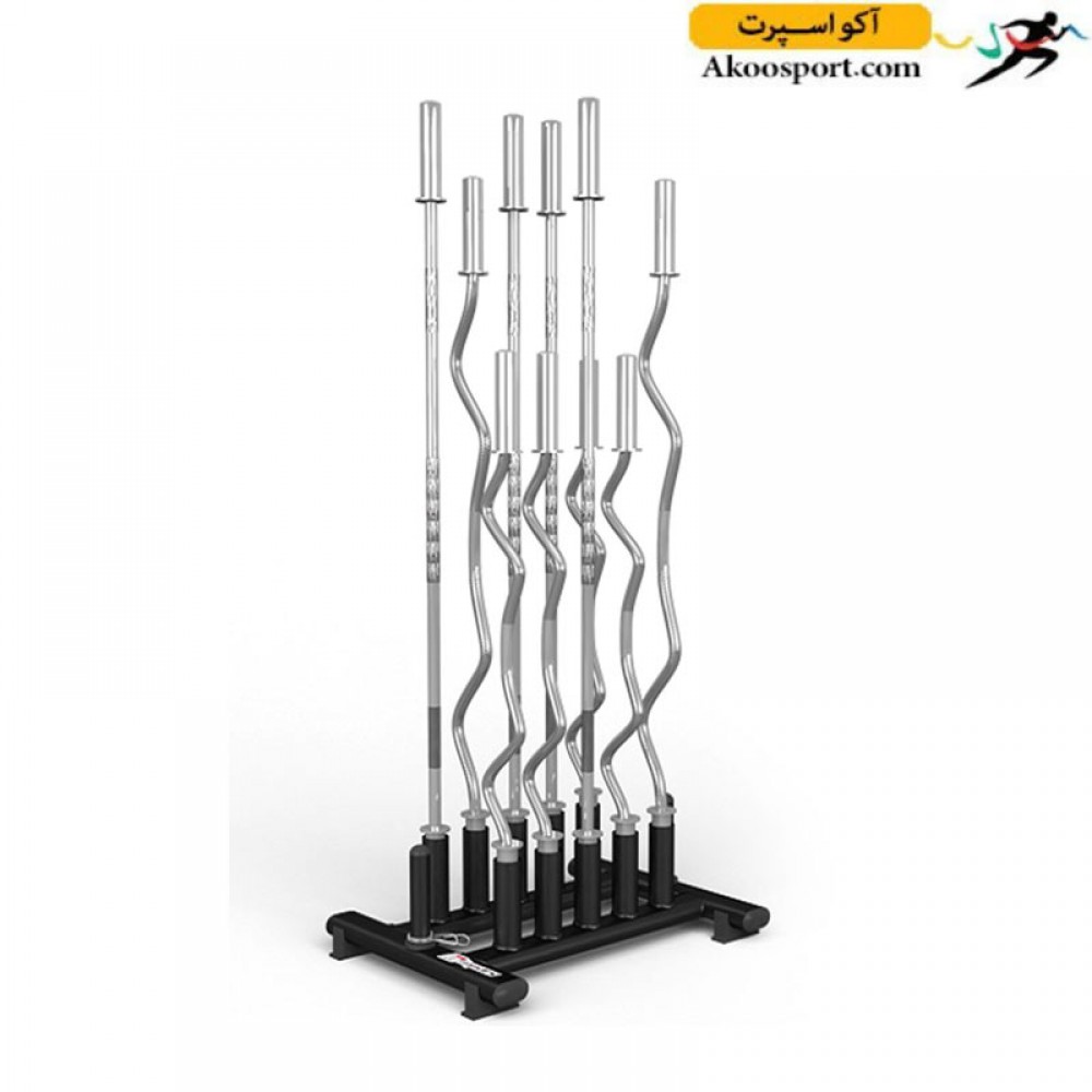 به گونه ای طراحی شده که میله های هالتر به صورت عمودی بر روی آن قرار میگیرند و به همین دلیل فضای بسیار کمی اشغال می کند.