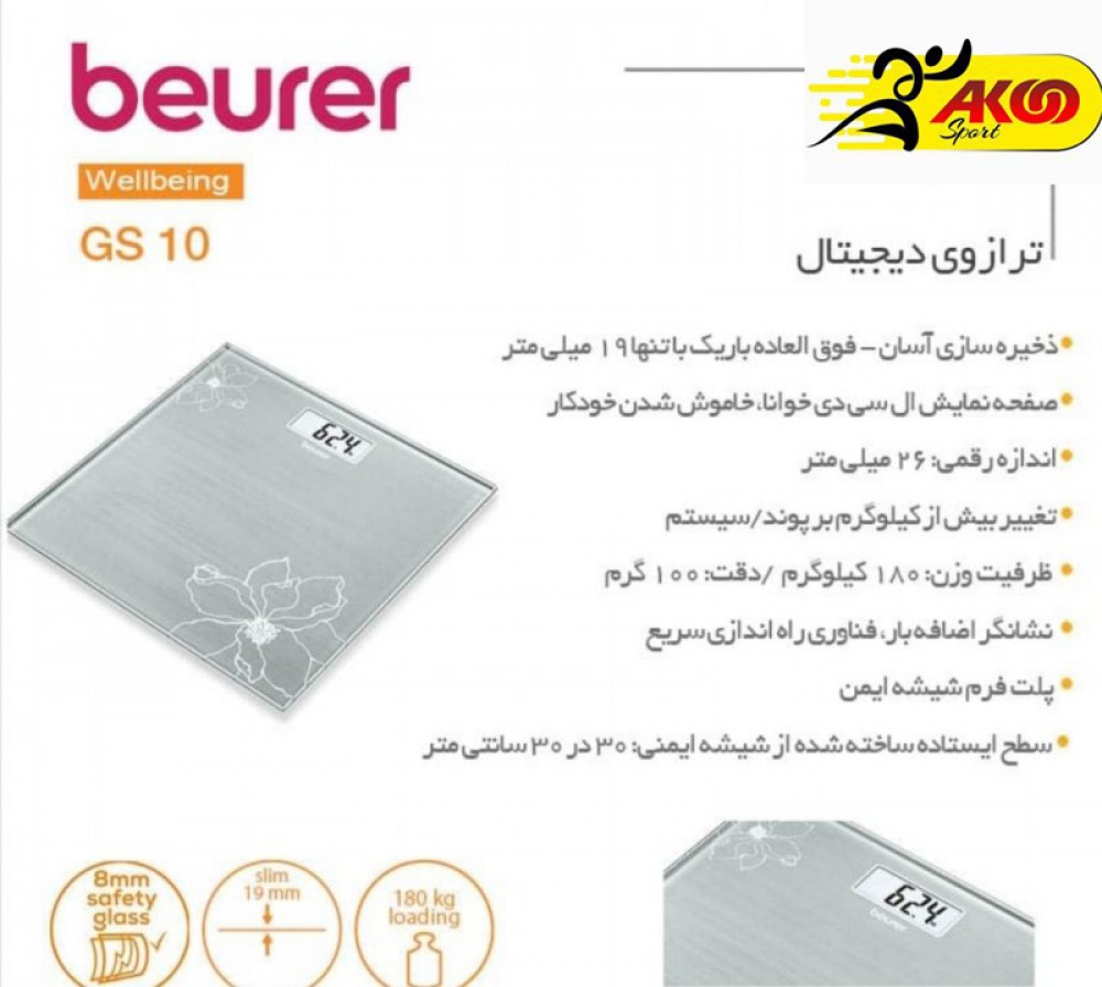 ترازوی دیجیتال شیشه ای بیورر مدل beurer GS10