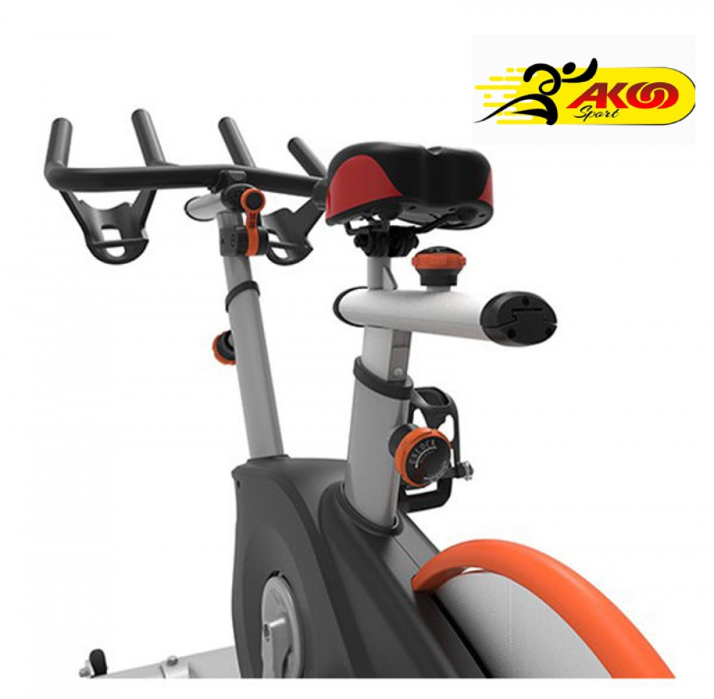دوچرخه اسپینینگ باشگاهی ایمپالس مدل PS450 با ترکیب رنگ نقرهای، مشکی و نارنجی ظاهری بسیار زیبا داشته و دارای پایه فیکس قابل تنظیم نیز میباشد.