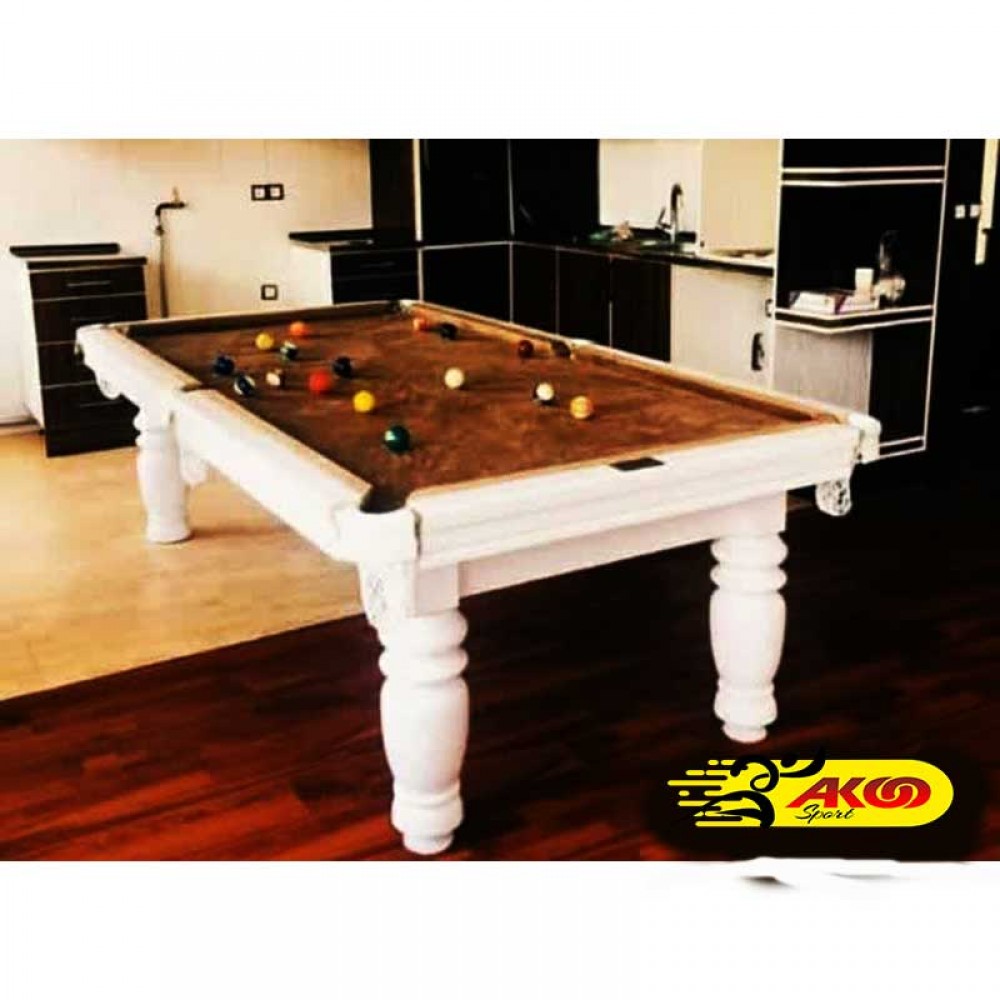 میز بیلیارد 9 فوت چهار پایه خراطی بدنه سفید هایکلاس High Class در آکو اسپرت : میز بیلیارد فوت هایکلاس چهار پایه خراطی بدنه سفید High Class در اندازه های ۷ فوت و ۸ فوت و ۹ فوت