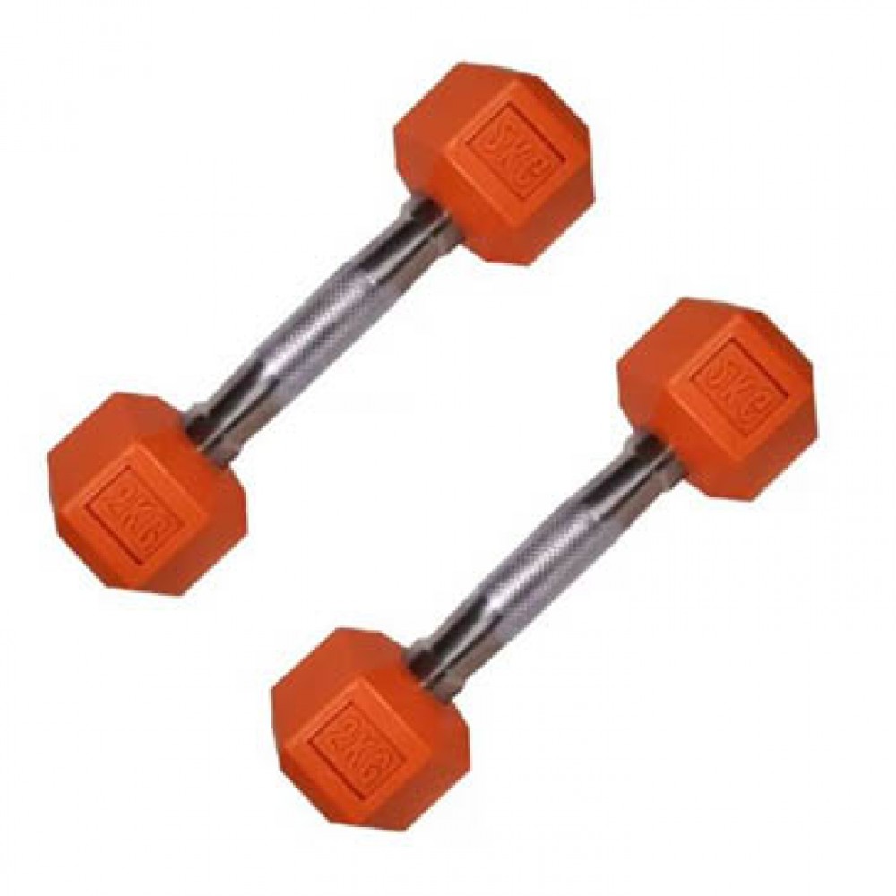 دمبل شش ضلعی رنگی وزن 2 کیلوگرم بسته 2 عددی