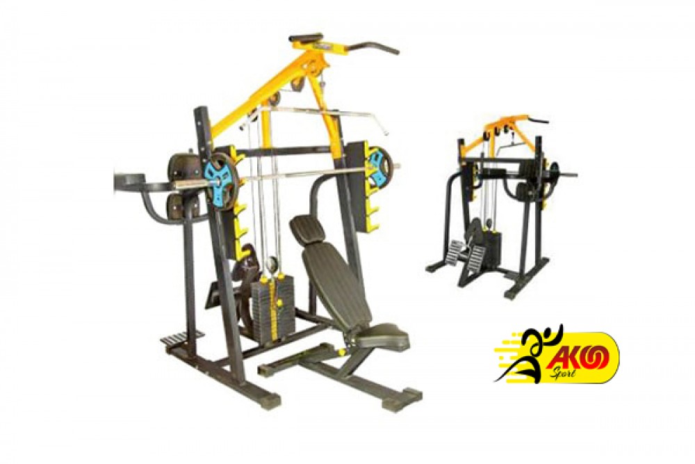 زیر بغل ، قایقی روئینگ ،پرس سینه ، پرس بالا سینه ، پرس سرشانه ، جلوبازو ، پشت بازو، اسکات و یک عدد نیمکت چند منظوره را دارا می باشد.