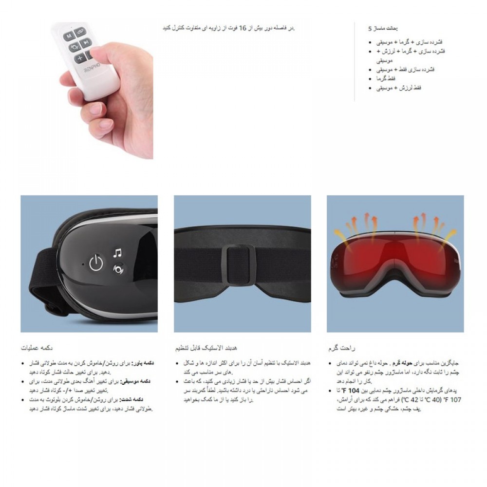 (نام بلوتوث: ماساژور چشم) به روز رسانی نسخه 2.0 با کنترل از راه دور و کنترل لمسی: ماساژور چشم ما به صورت تصادفی و دقیق با کنترل از راه دور و کنترل لمسی