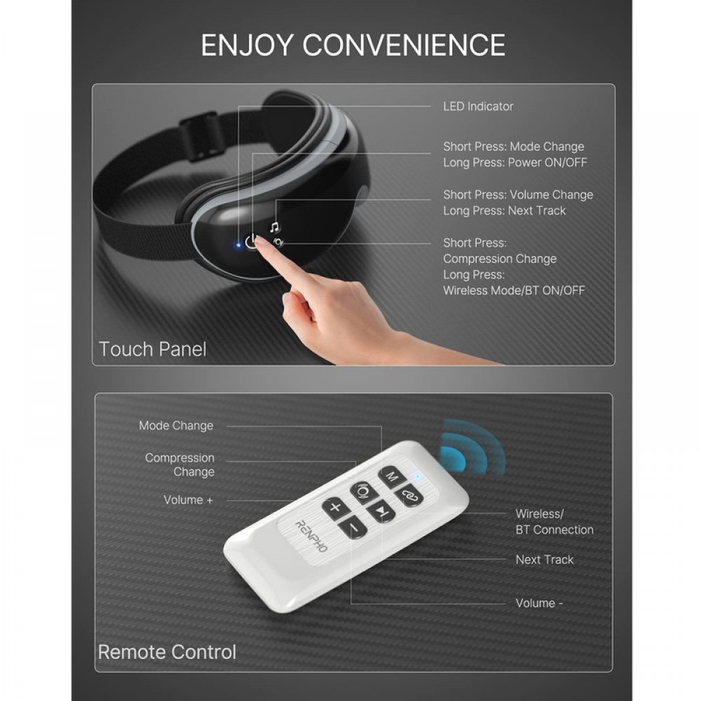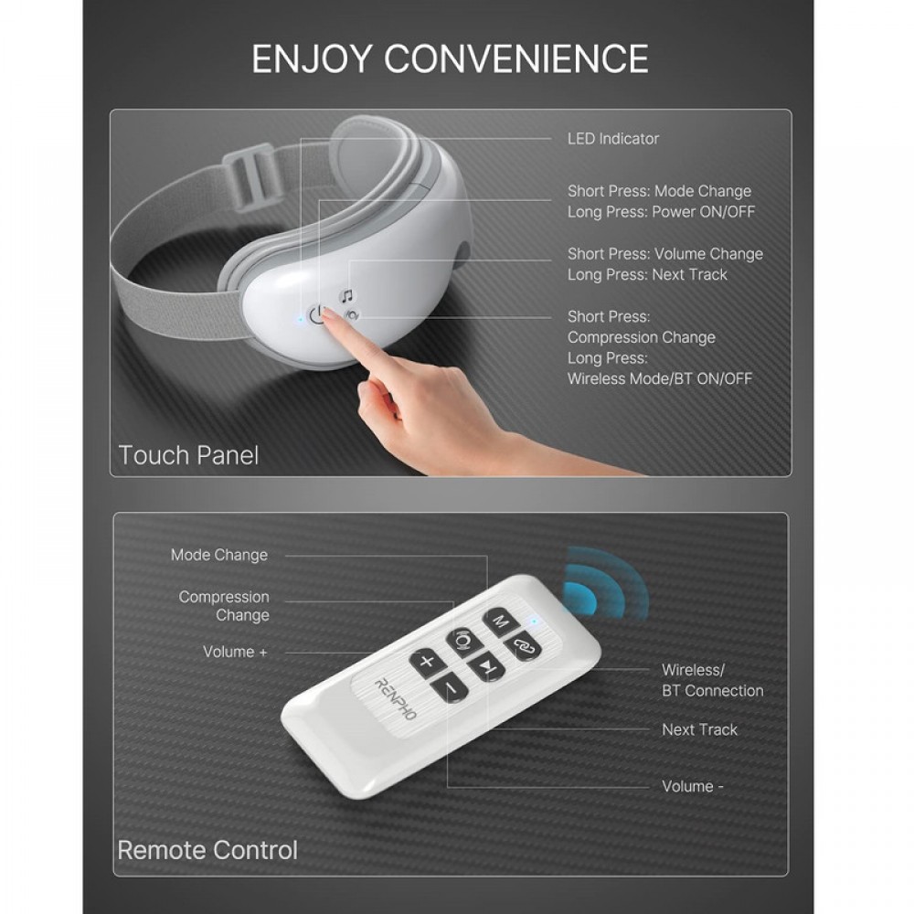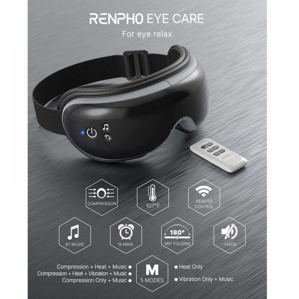 ماساژور چشم با کنترل از راه دور RENPHO 2.0 با گرما، فشرده سازی، موسیقی بلوتوث، قابل شارژ.