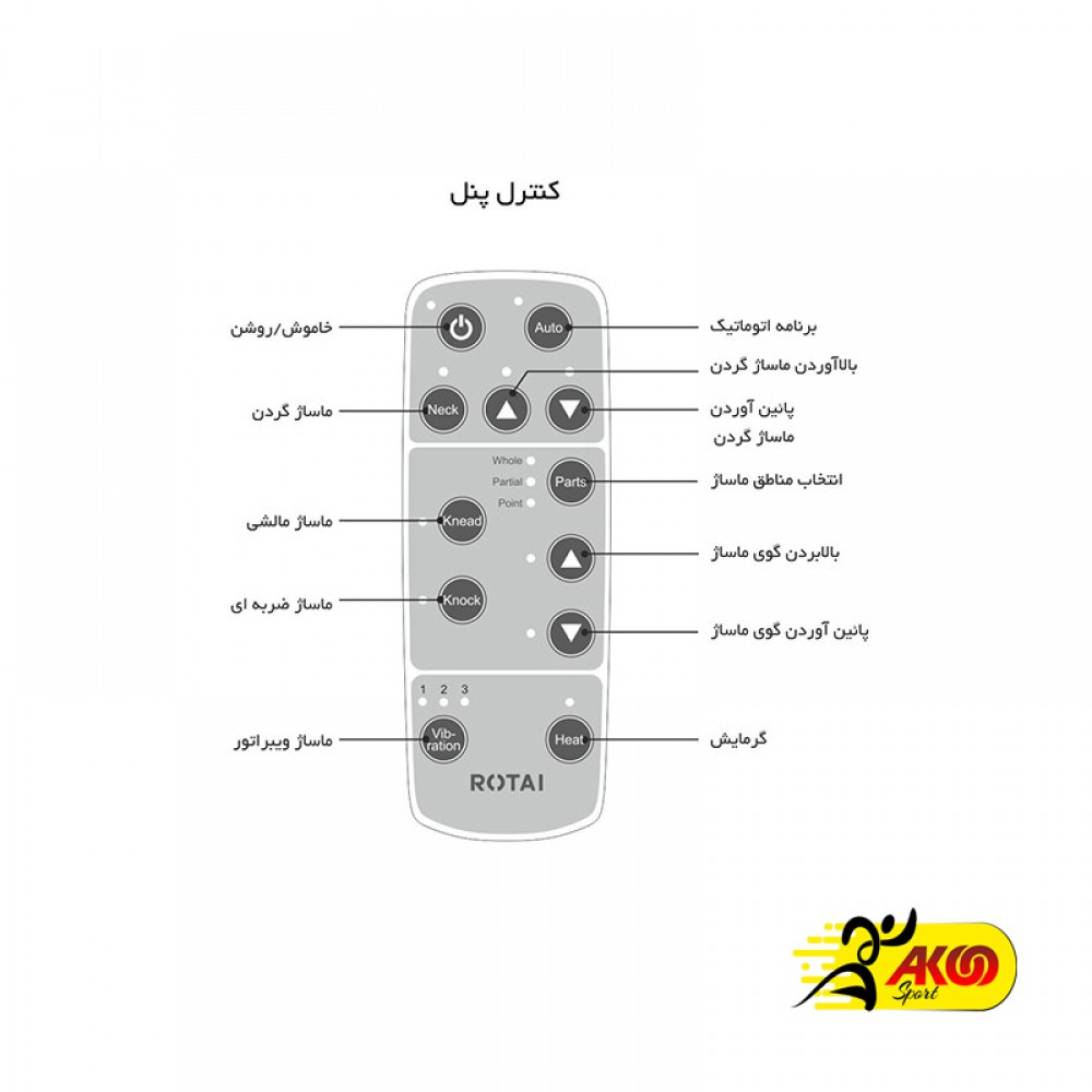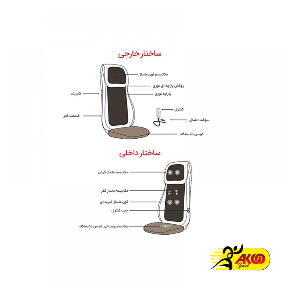 ویژگیهای محصول روکش صندلی ماساژور روتای مدل Rotai RT 2188 در آکواسپرت در یک نگاه :
