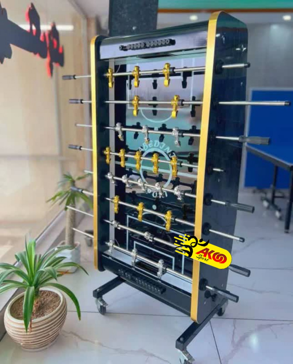 فوتبال دستی پایه تاشو کف شیشه عابدینی F۱۱۹ طرح مشکی- نوع میلگرد : ۱۶ کششی با آبکاری کروم