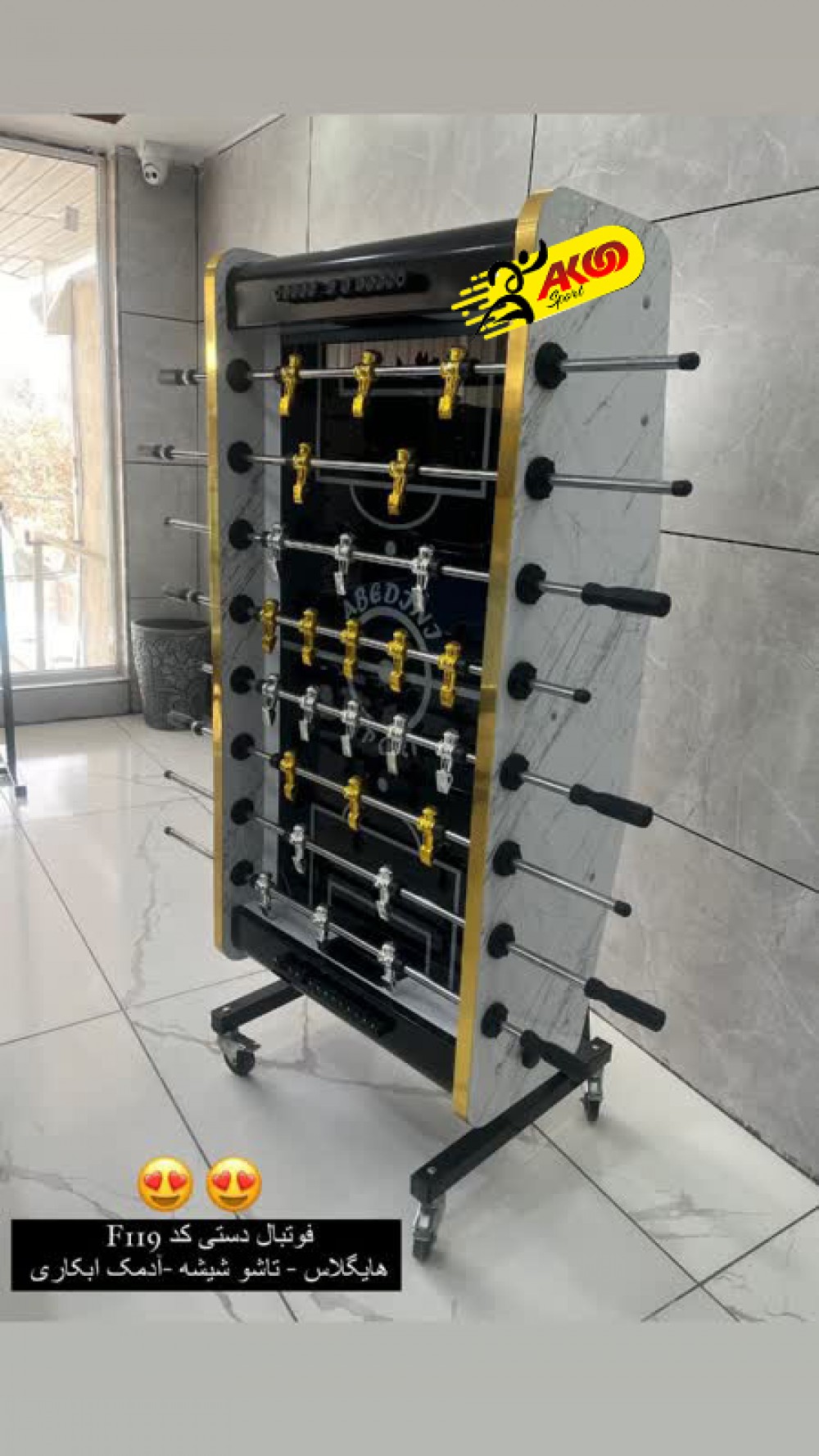 فوتبال دستی پایه تاشو کف شیشه عابدینی F۱۱۹ در آکو اسپرت :- فوتبال دستی MDF کله فلزی کلاسیک