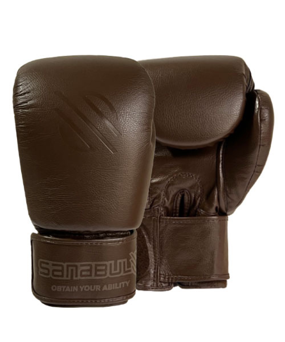 دستکش بوکس SANABUL مدل BATTLE FORGED معرفی شده در این بخش از جنس چرم مصنوعی بوده و در وزن 10 و 12 و 14 اونس و در رنگ قهوه ای ارائه می شوند.
