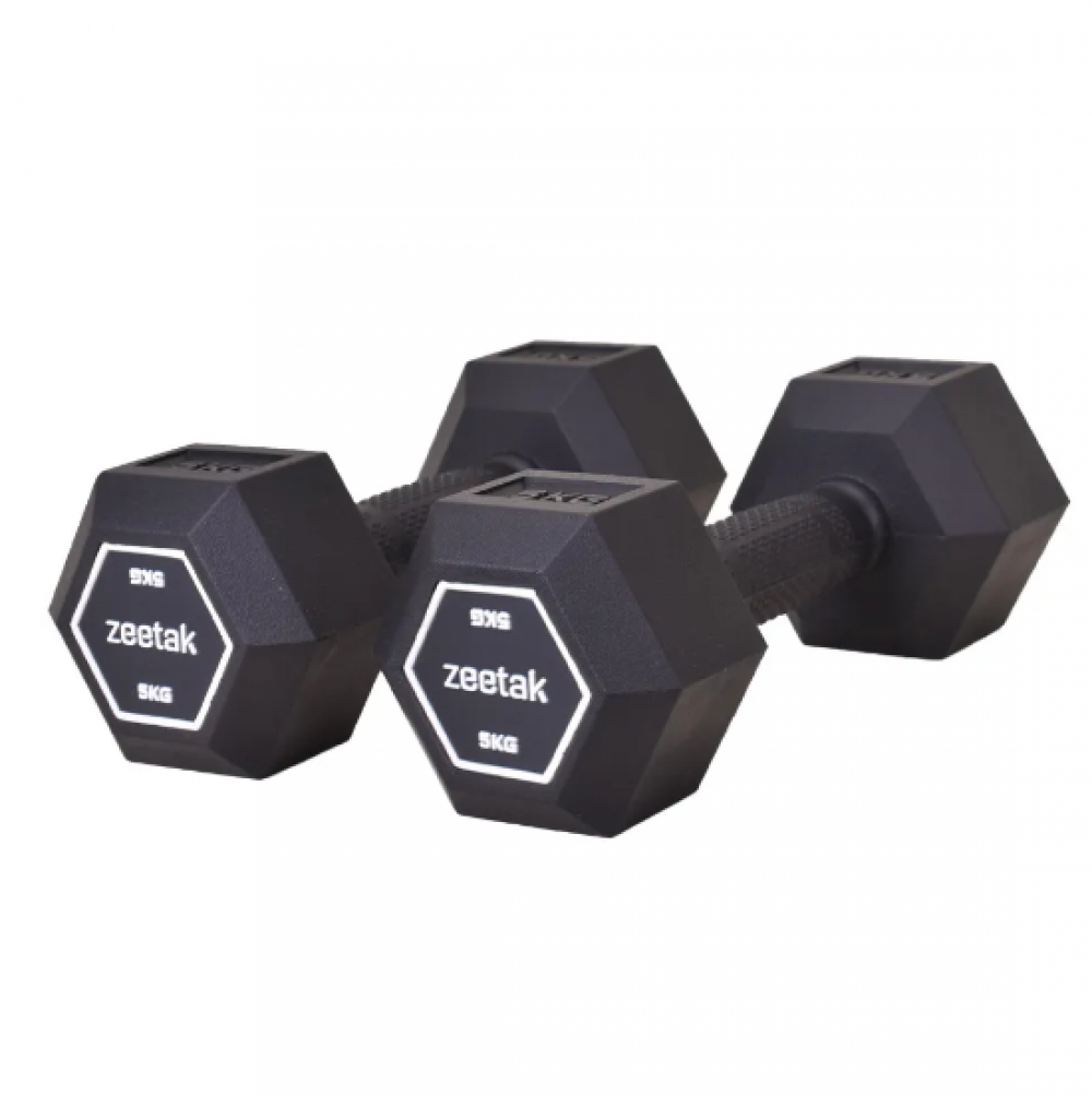 دمبل شش ضلعی تمام لاستیک مارک دار 5 کیلویی ZEETAK بسته 2 عددی
