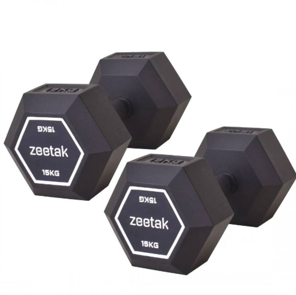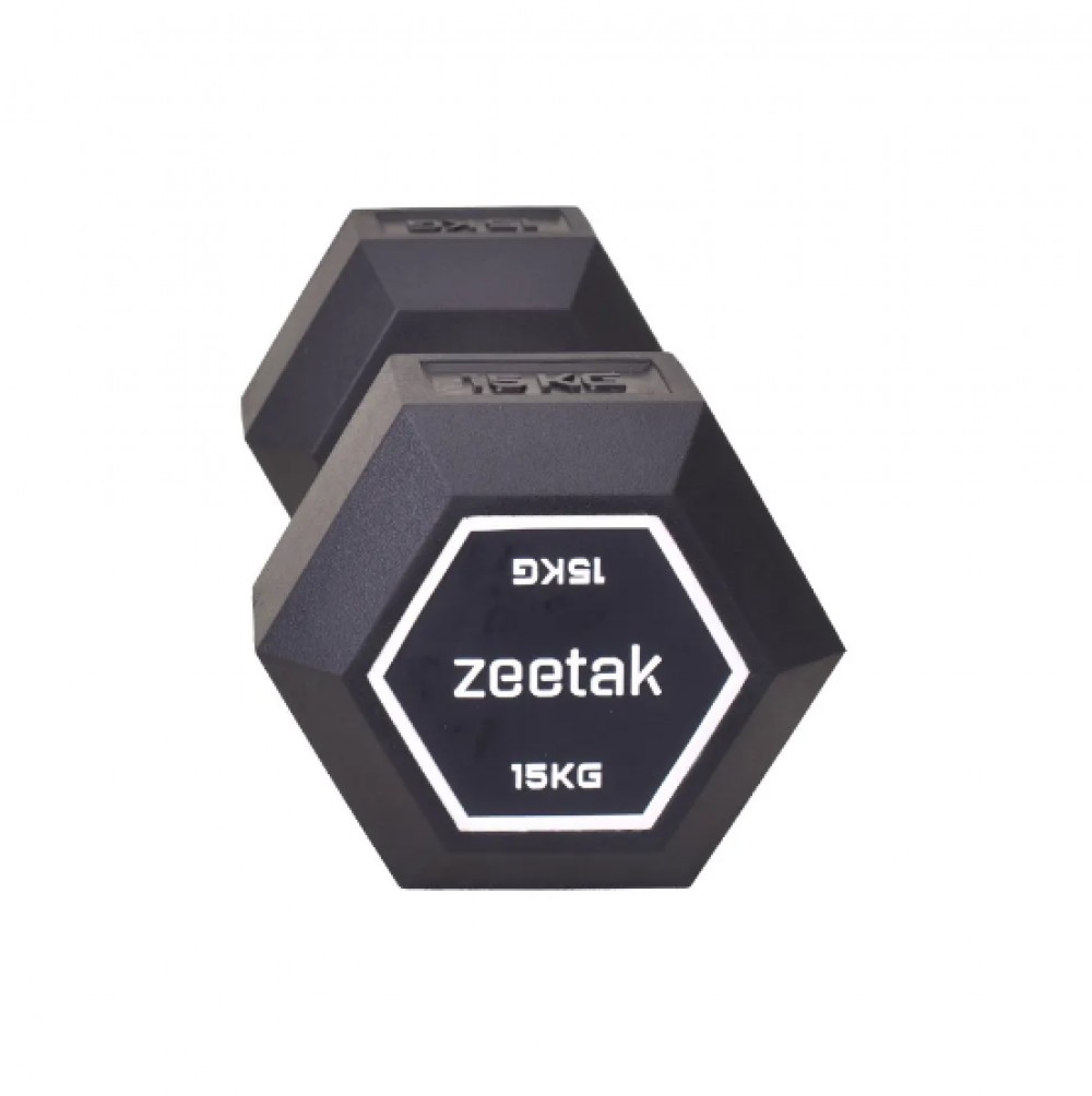 دمبل شش ضلعی تمام لاستیک مارک دار 15 کیلویی ZEETAK بسته 2 عددی