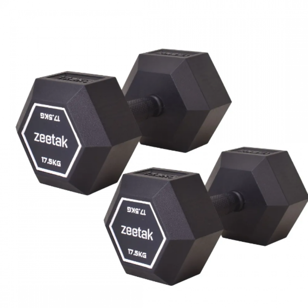 دمبل شش ضلعی تمام لاستیک مارک دار 17.5 کیلویی ZEETAKبسته 2 عددی