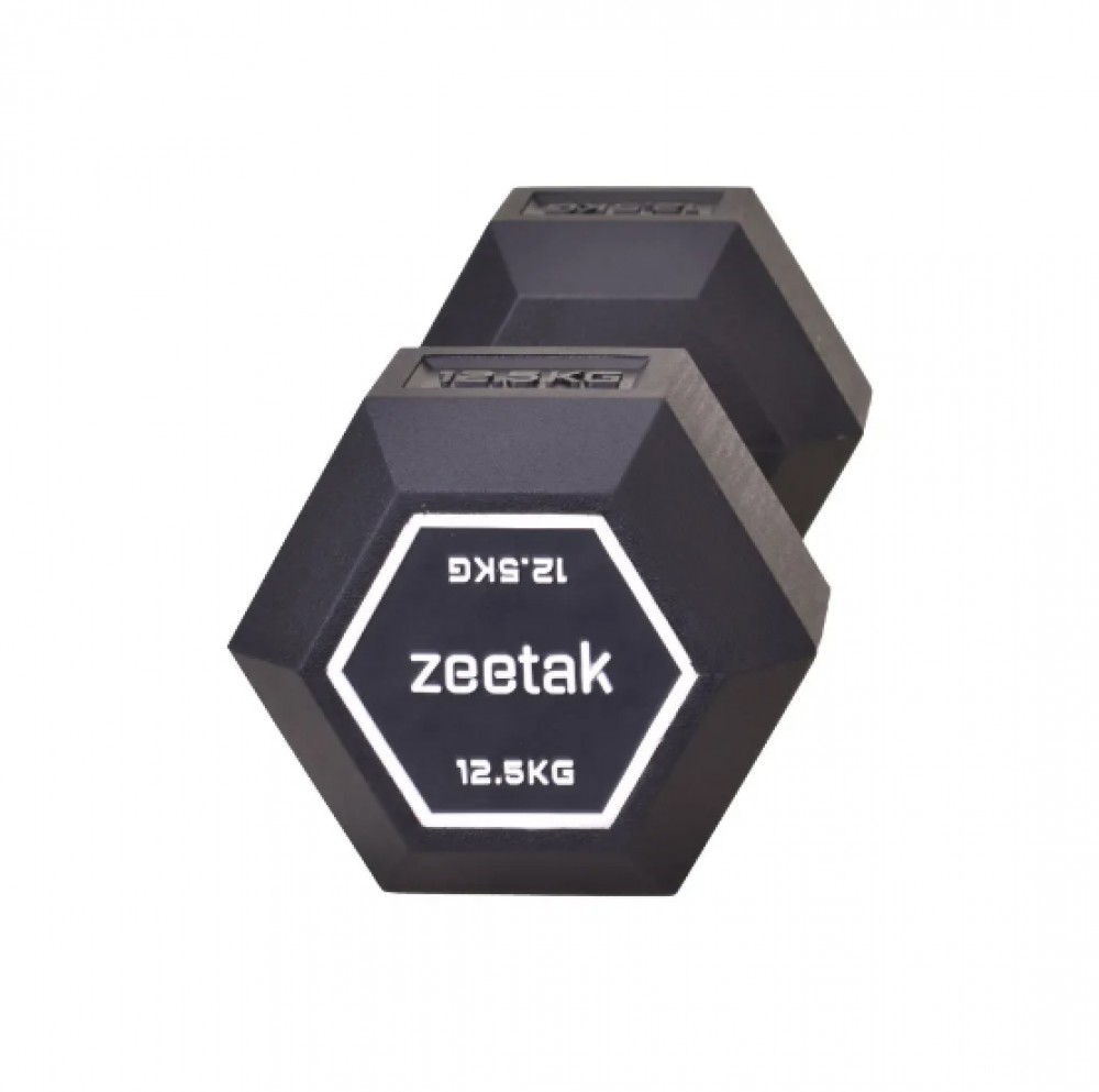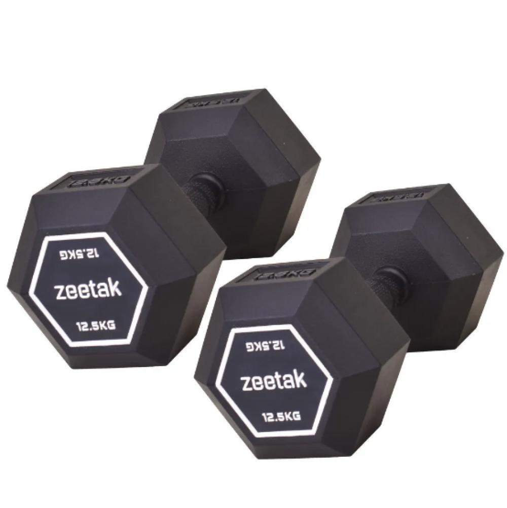 دمبل شش ضلعی تمام لاستیک مارک دار 12.5 کیلویی ZEETAKبسته 2 عددی