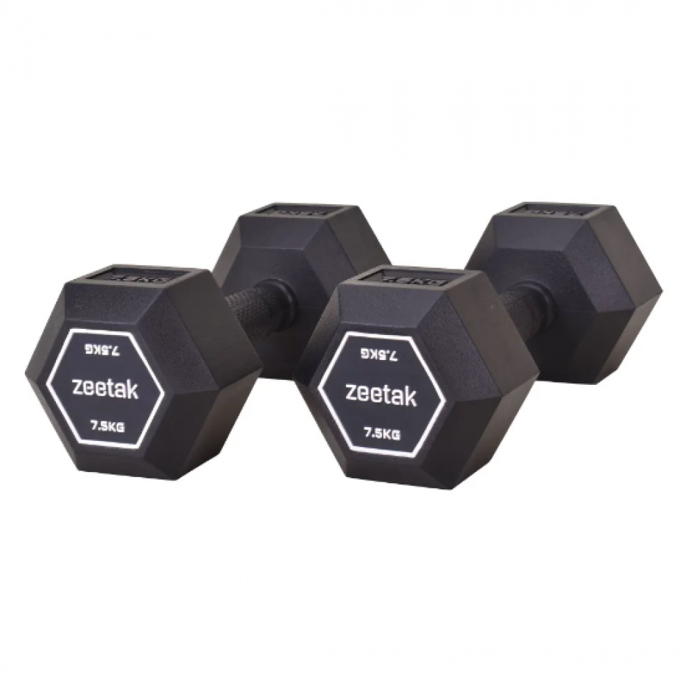 دمبل شش ضلعی تمام لاستیک مارک دار 7.5 کیلویی ZEETAKبسته 2 عددی