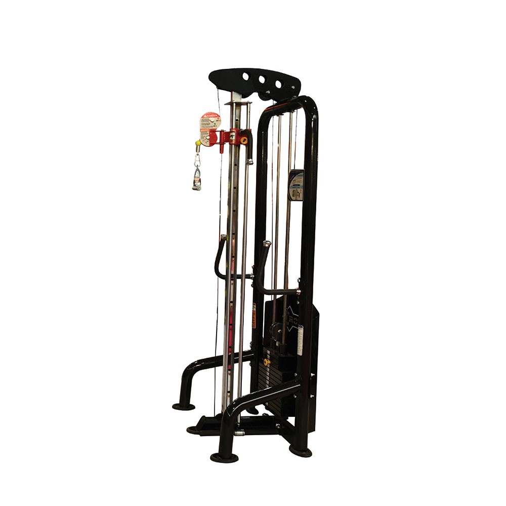 - پولی های دستگاه سیم کش را روی بالاترین درجه تنظیم کنید. اگر قدتان کوتاه است نیازی نیست بالاترین درجه پولی را انتخاب کنید، همین که پولی بالاتر از سر شما باشد کفایت می کند. وزنه های متناسب با توانایی خود را در دو طرف دستگاه انتخاب کرده و دسته های آن را در دست بگیرید.