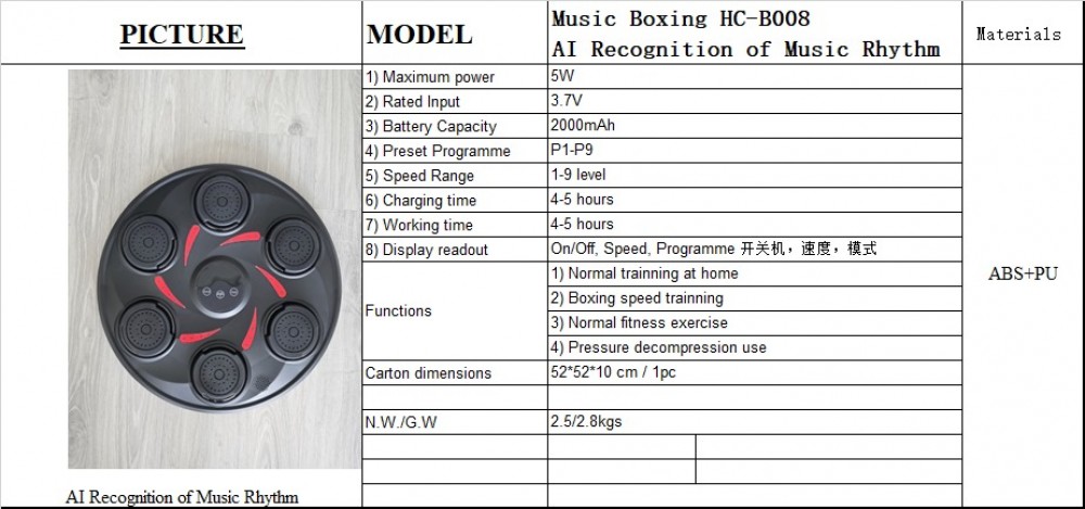 کیسه بوکس دیواری هوشمند موزیکال مدل HC-B008