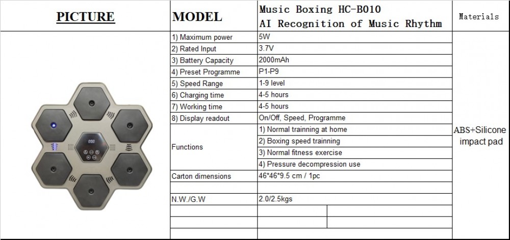 کیسه بوکس دیواری هوشمند موزیکال مدل HC-B010