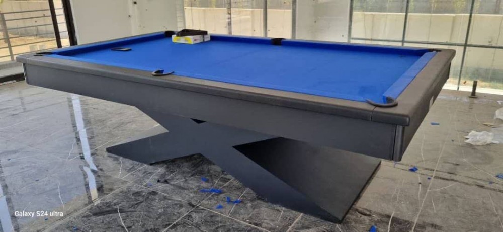 میز بیلیارد 8 فوت بدنه مشکی پایه X هایکلاس با پارچه آبی