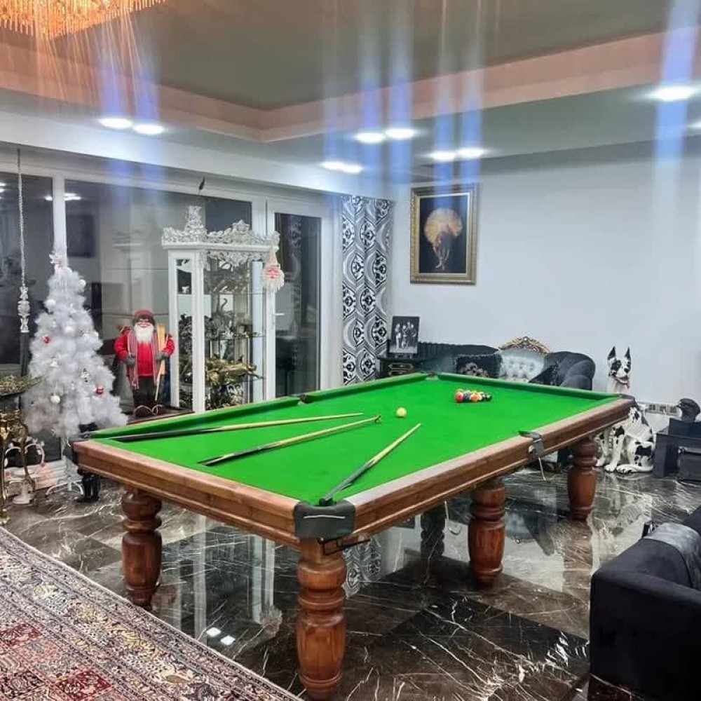 میز اسنوکر ۱۰ فوت ۶ پایه خراطی هایکلاس با پارچه سبز اورجینال در آکواسپرت :شامل لوازم جانبی :