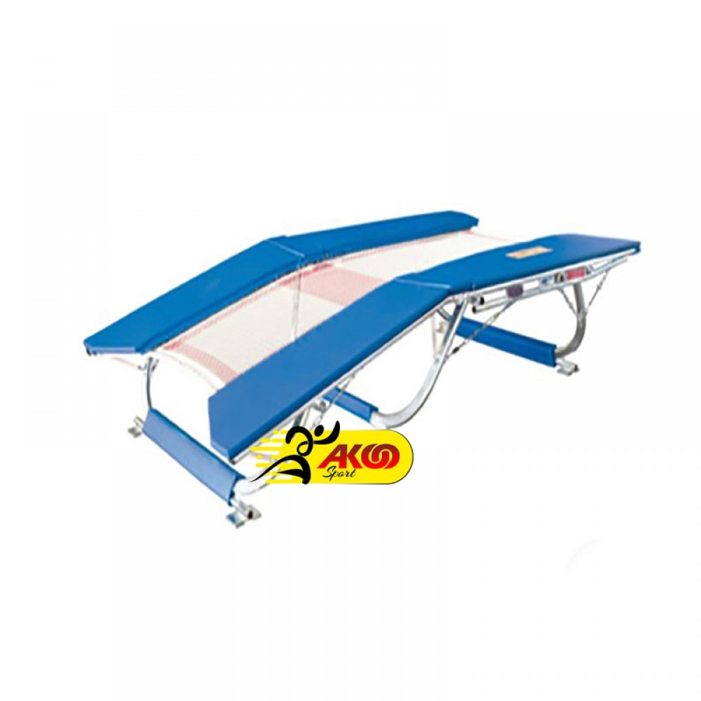 ترامپولین دوبل قهرمانی ژیمناستیک با کفی 5 میل پلی آمید و پایه بیضی طرح یورو
