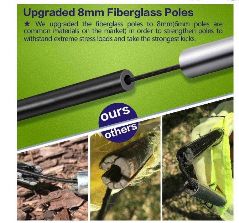پارچه آکسفورد ضخیم شده مقاوم در برابر سایش - جلوگیری از پارگی با توری تنگ چند رشتهای - دو برابر ضخیمتر و قویتر از تمام تورهای دروازه موجود در بازار - 4 عدد میخ آهنی با کیفیت بالا - میلههای فایبرگلاس 8 میلیمتری ممتاز - وزن سبک - قابل حمل |